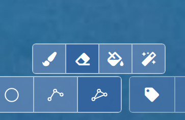 The polygon eraser tool allows you to remove parts of polygons with a circular brush. The button to activate the polygon eraser tool appears when you hover your cursor over the button of the polygon tool: