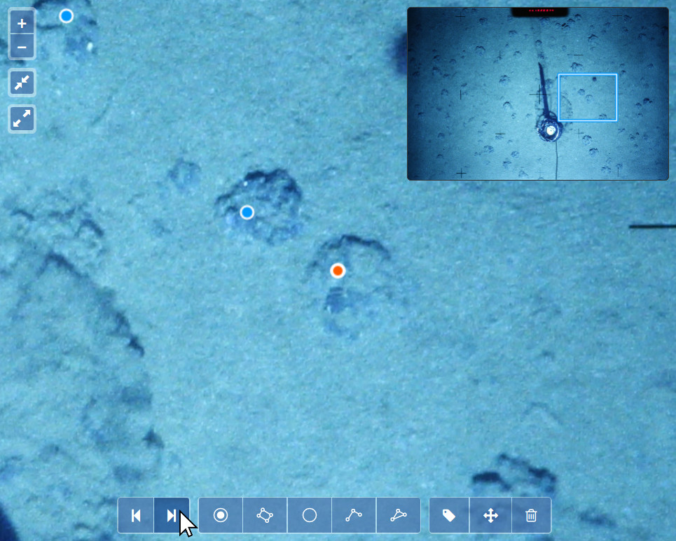 At the top right of the image annotation tool there is the minimap. It does not only highlight your current viewport on the image but you can also use it to move the viewport or quickly jump around. Drag the highlighted viewport in the minimap around to move it or click on a location in the minimap to immediately center your viewport on this point.